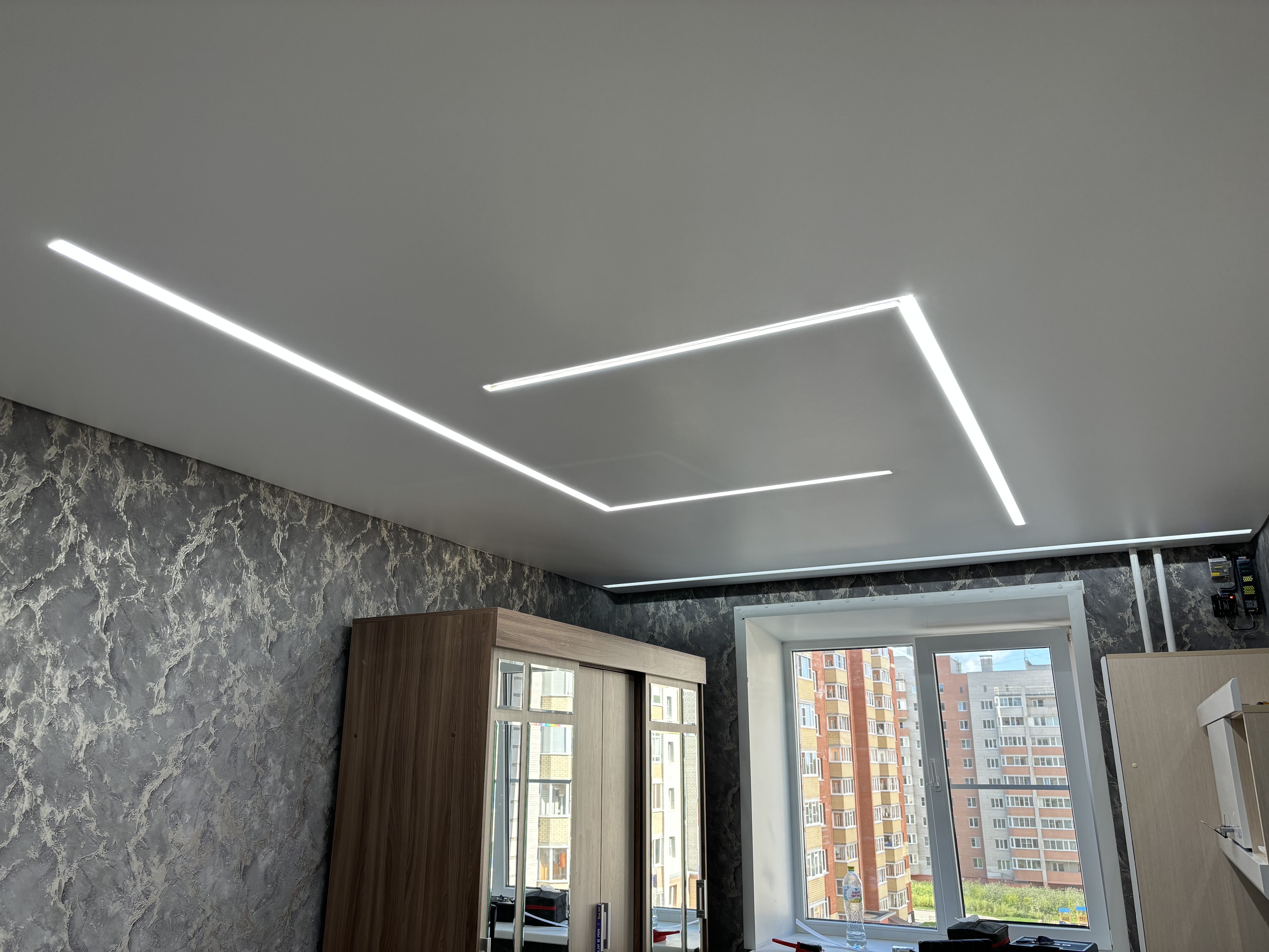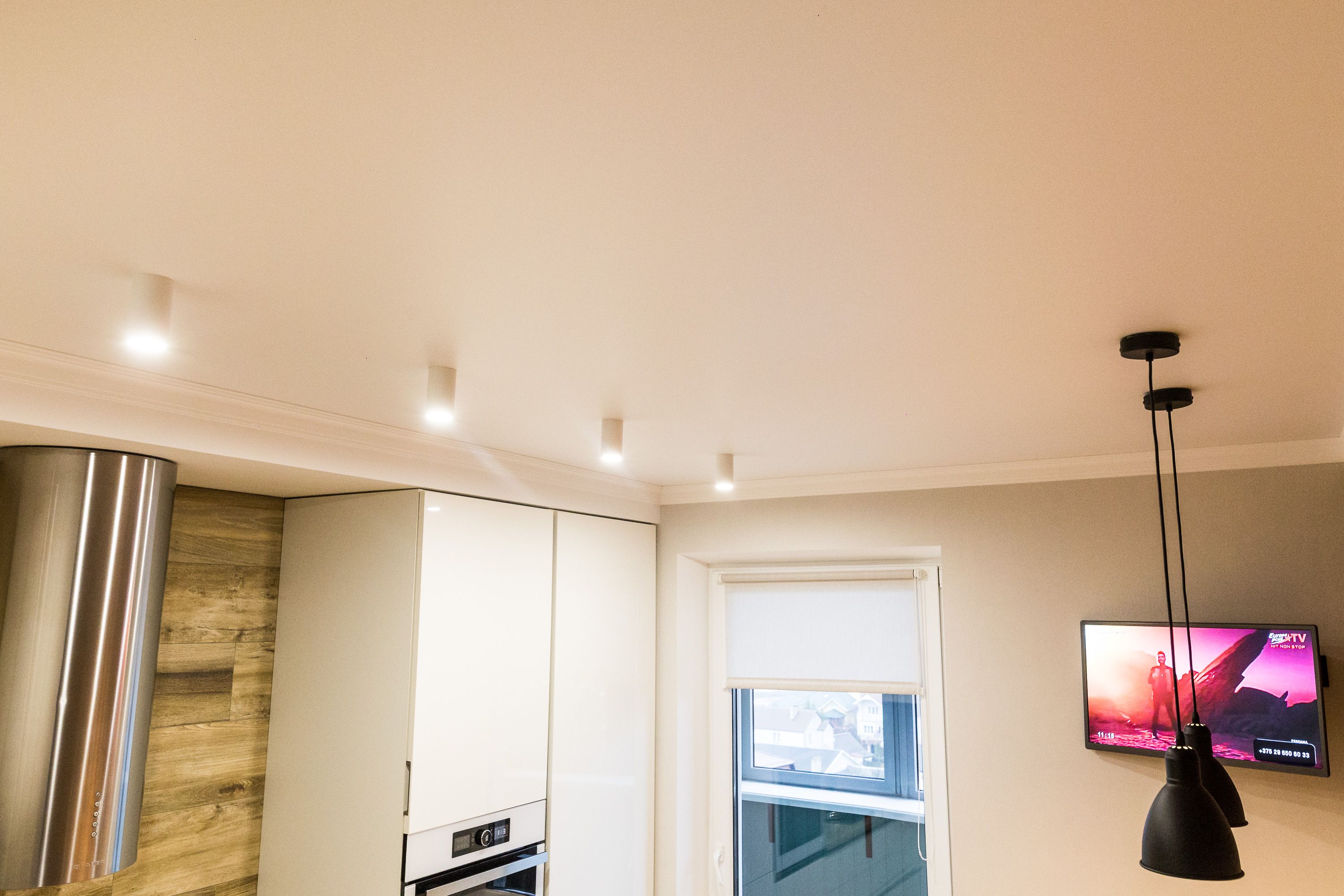 Специалист по замерам поможет подобрать натяжной потолок под конкретные комнаты с учетом освещения и рассчитает вам 3 варианта полотен под ваши комнаты